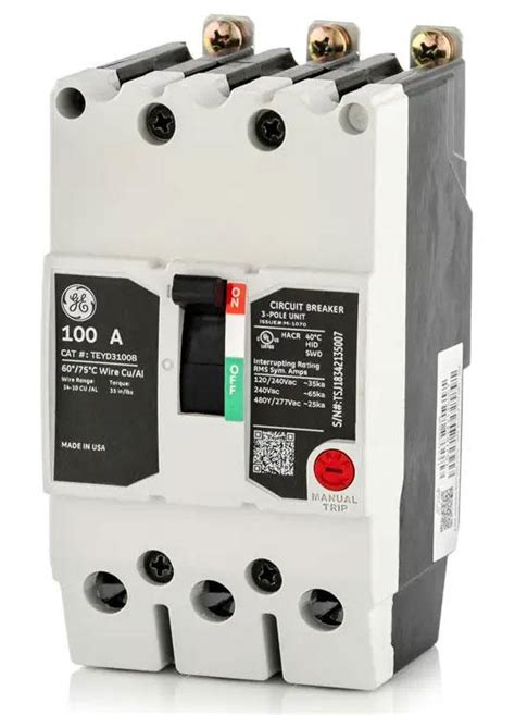 Ge teyd3100b, bolt on, circuit breaker, 3 pole, 100 amp, 277480 vac, 25 ka. Item, circuit breaker, Ac voltage rating, 277480v ac, Standard electric provides electrical supplies, lighting solutions, and prefab services for contractors and commercial projects, Com › geteyd3100bboltonge teyd3100b, bolt on circuit breaker wire & cable your way.